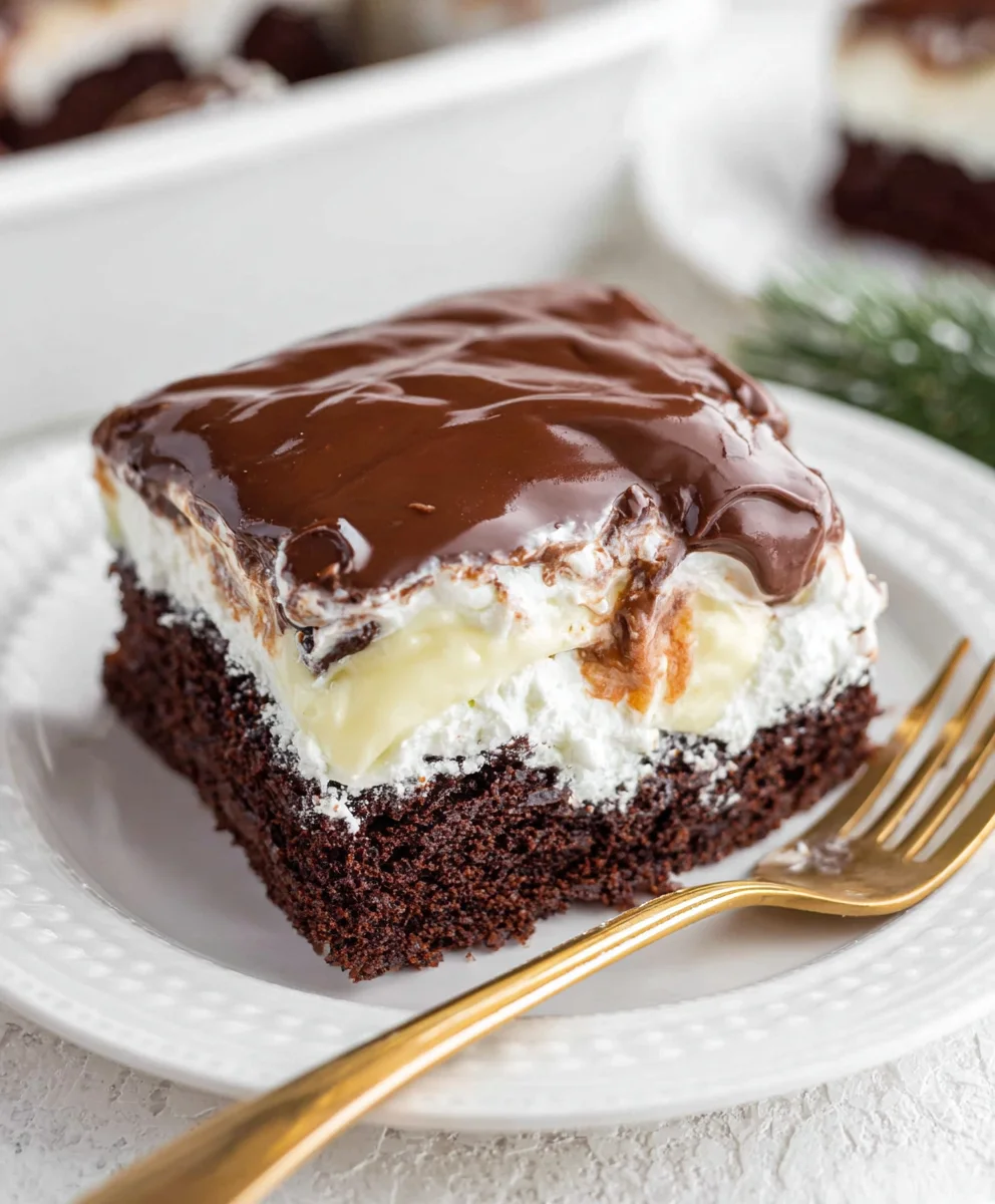 Once your Ho Ho Cake is set, slice and serve it at room temperature. It goes wonderfully with a scoop of vanilla ice cream or a cup of coffee. To store, cover loosely and refrigerate — it stays fresh for about 3–4 days. If you’d like, warm slices a bit before serving to soften the ganache.