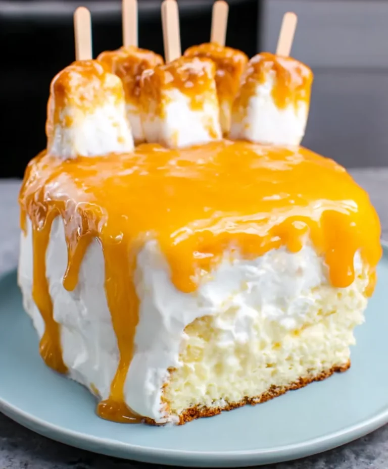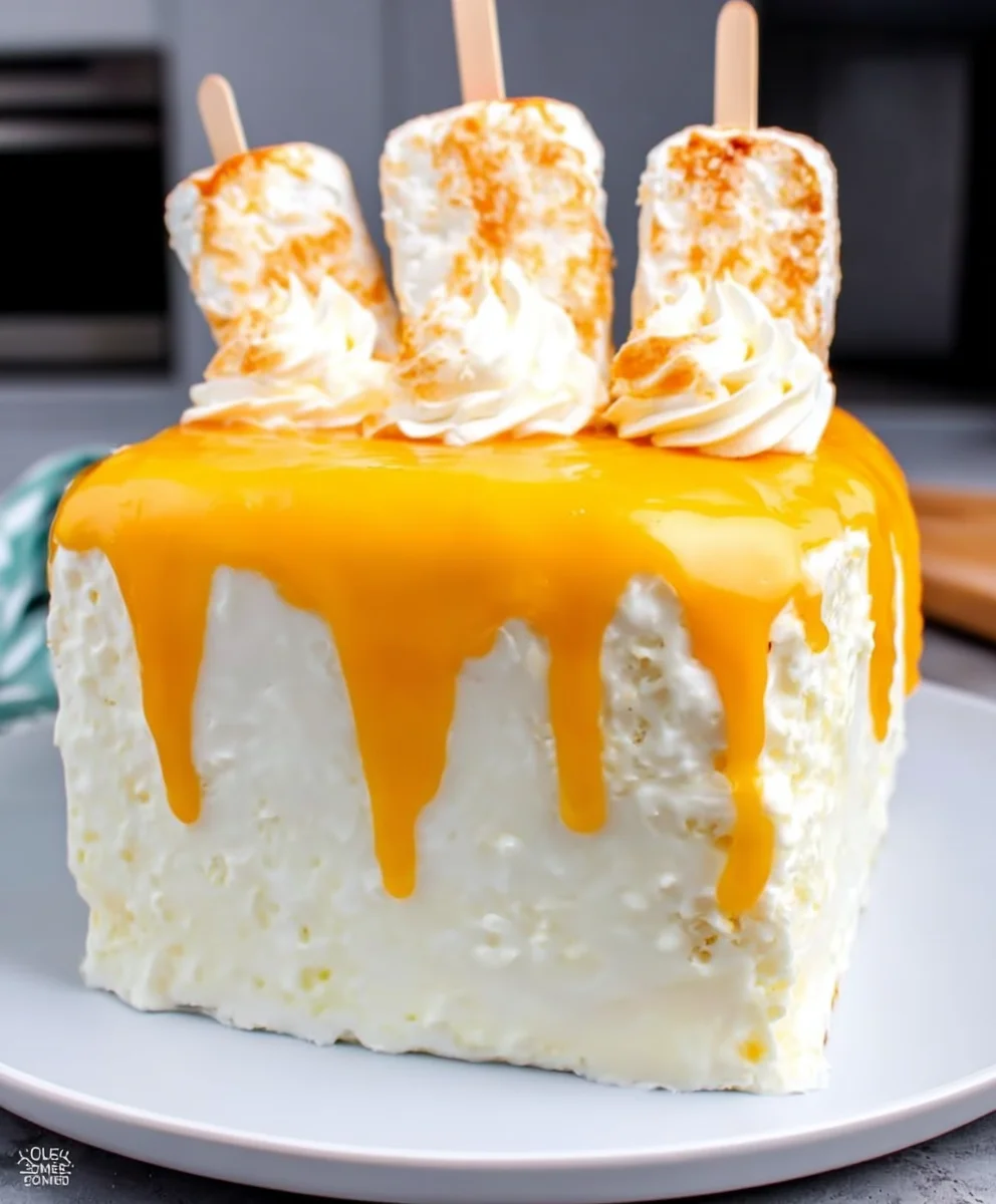 This Orange Dreamsicle Cake is a stunning dessert with layers, glaze, and popsicle accents. Serve at room temperature so flavors shine. It’s perfect for birthdays, showers, or any sweet celebration.