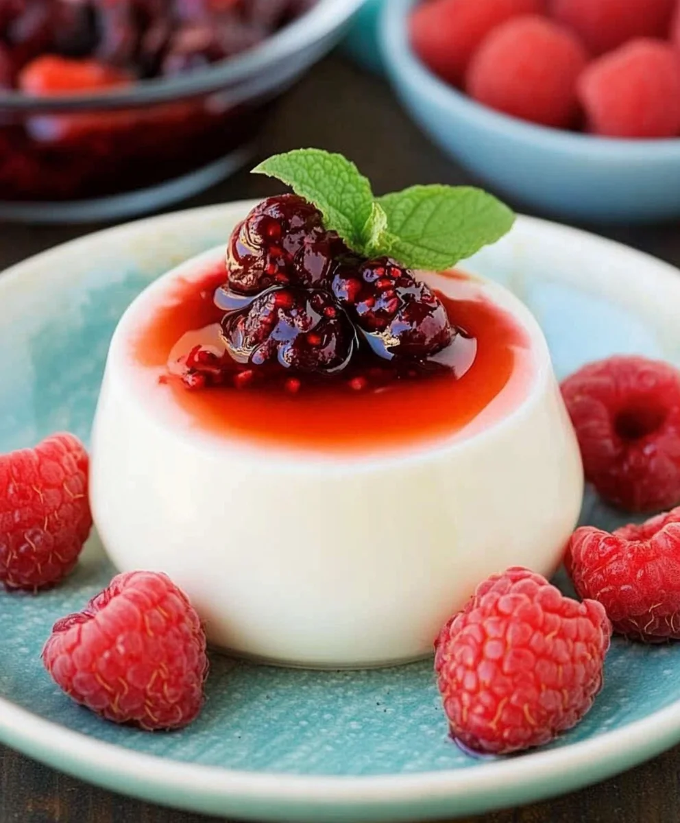 - Serve with Elegance: Spoon berry sauce over each chilled panna cotta. Serve immediately or store covered in the fridge.