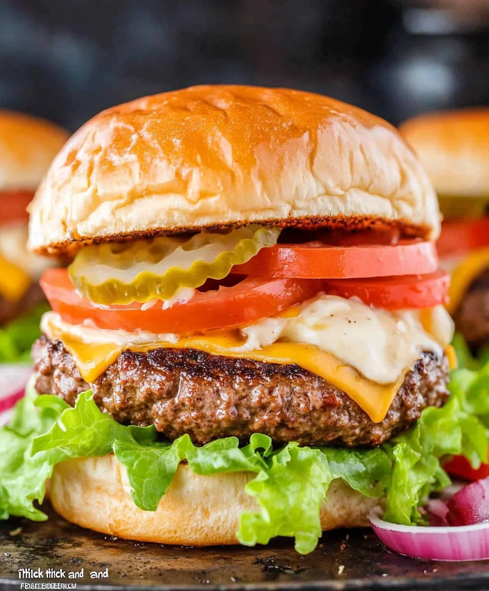 Whether you're planning a relaxed backyard cookout or a family dinner indoors, these burgers bring irresistible flavor to the table. Each bite carries the right balance of savory beef, melted cheese, crisp lettuce, and tangy pickles.