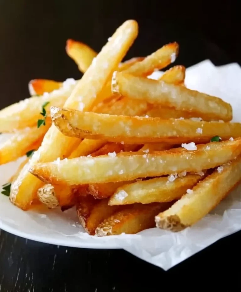 Second Fry: Return oil to 400°F. Fry half of the cooled potatoes until crisp and golden, about 3½ minutes, adjusting heat to maintain around 360°F. Drain on paper towels and season with kosher salt. Keep finished fries warm on a wire rack in a 200°F oven while you fry the second batch.
