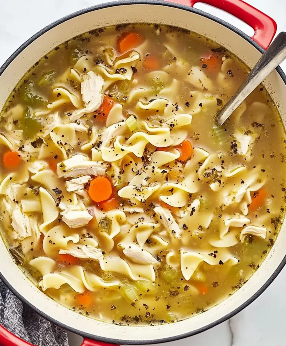 Step into warmth with this quick and easy chicken noodle soup recipe, blending homestyle coziness with simple preparation for a satisfying bowl.