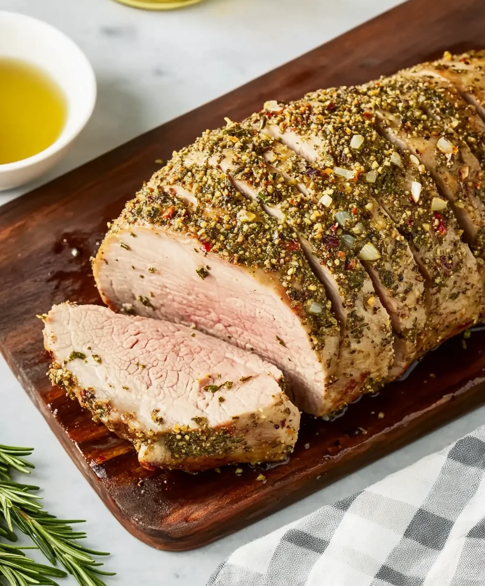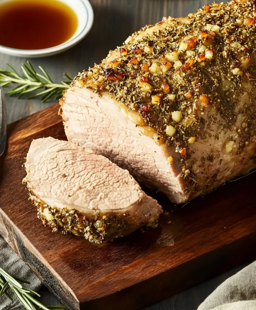 This roasted pork loin blends rustic flavors with refined presentation. The herb-garlic crust seeps into the meat, keeping it moist and tasty. While it slowly roasts, it fills your home with irresistible aroma—pure comfort on a plate.