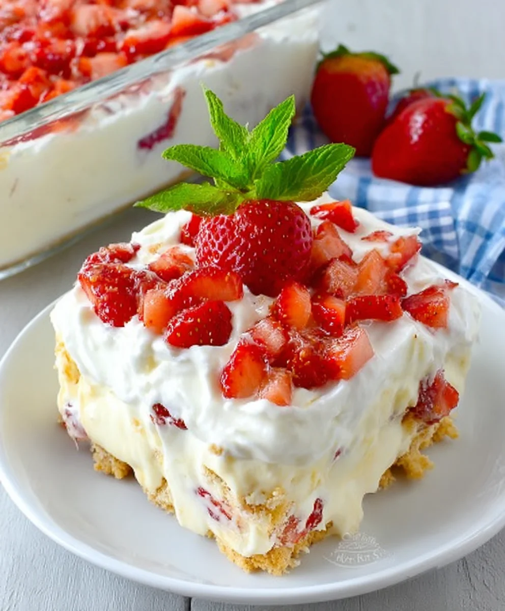 Finish and Chill: Top with the remaining Cool Whip and then the remaining strawberries. Cover and refrigerate for at least 6 hours, preferably overnight, until set and sliceable.