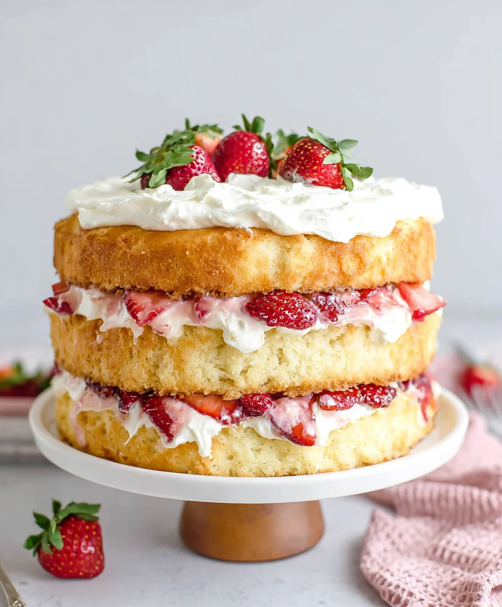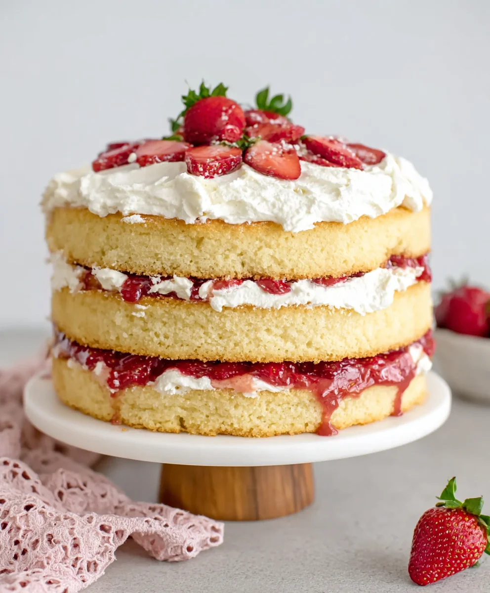 Savor the Sweet Layers of Strawberry Shortcake Cake with Mascarpone Cream